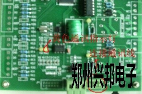 用通訊線將主控器和電腦連接好后,要注意通訊線的正負(fù)極不能接反,如果如圖四所示位置的黃色指示燈常亮的話說(shuō)明通訊線路沒(méi)有連接正確,如果通訊線路連接正常的話,黃色指示燈是處在熄滅狀態(tài)的。(如圖四所示:)