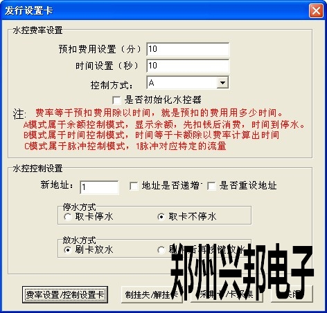 費率設(shè)置卡:設(shè)置水控的扣費費率。