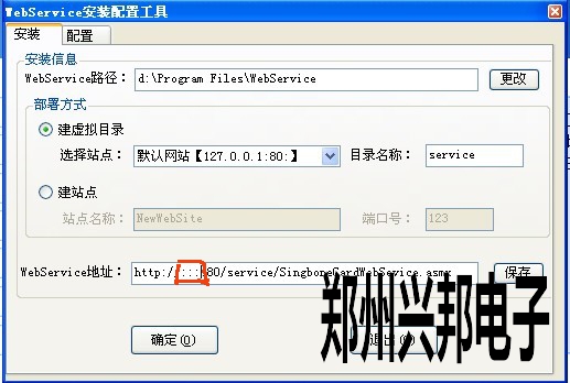 2. 如紅色標(biāo)注處,正常的應(yīng)該顯示本機(jī)電腦的IP地址,但是此時(shí)無法獲取IP地址,80端口被占用,在此處手動(dòng)輸入本機(jī)IP地址,點(diǎn)擊保存,復(fù)制WebService地址,配置完成后退出。
