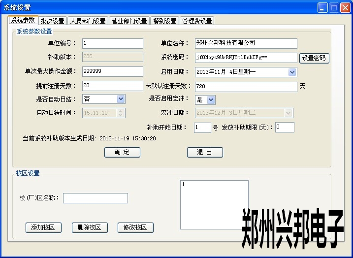 Ø (廠)區(qū)設(shè)置:添加校區(qū),刪除校區(qū),修改校區(qū)