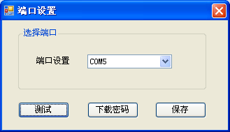 2)打開端口設(shè)置后選擇端口號,然后點擊測試,下載密碼,保存,測試成功讀卡器會響一聲