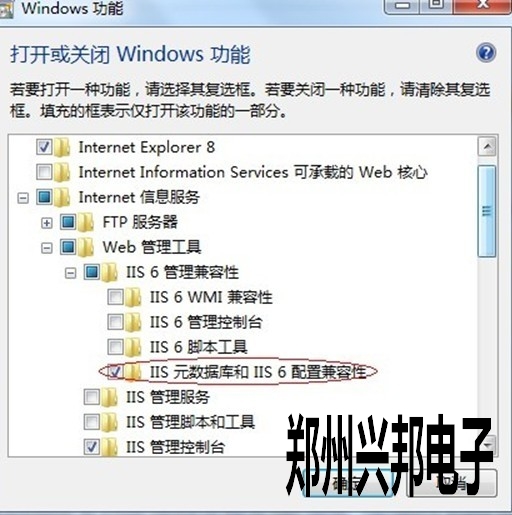 1IIS7是沒有元數據庫的,所以必須安裝兼容IIS6的組件;