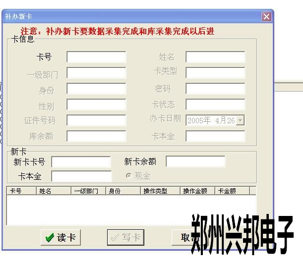 2、把新卡放在IC讀卡器上,然后在軟件里有個(gè)卡管理--補(bǔ)辦新卡,
