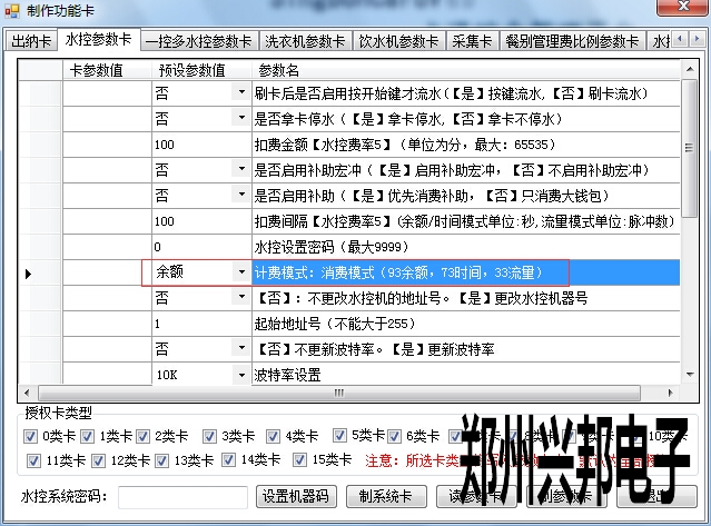 基于互聯(lián)網(wǎng)一卡通平臺的GPRS水控,在制卡中心--功能卡制作--水控參數(shù)卡中,可以看到有三種計費模式