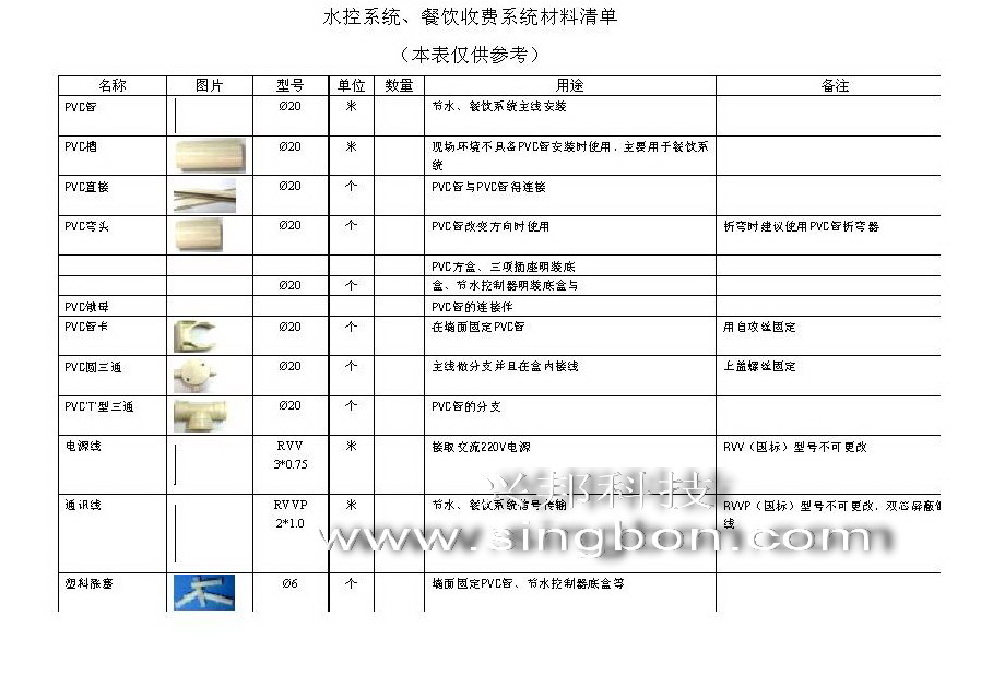食堂售飯、消費、水控等系統(tǒng)施工中所需要的材料規(guī)格清單