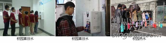 管道直飲水則克服了以上供水方式的所有弊端,在宿舍、教學樓、圖書館、辦公樓等公共區(qū)域均可使用,且24小時不間斷供水,刷卡飲水,即取即飲,冷熱轉(zhuǎn)換,衛(wèi)生安全。
